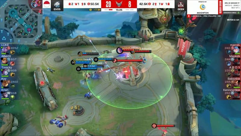 Performa solid ditunjukkan EVOS Esports saat menghadapi Geek Fam. Dengan kehadiran midlaner baru, Treacky, EVOS tampil lebih variatif dan berhasil mengamankan kemenangan telak 2-0.