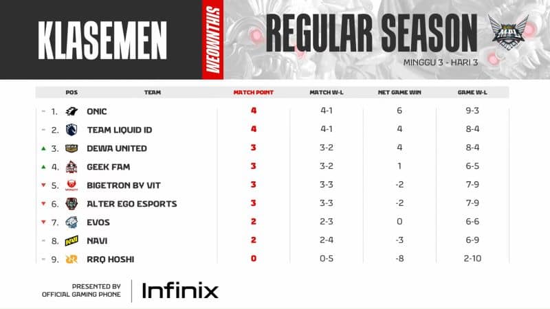 Klasemen Makin Chaos, RRQ Masih di Bawah