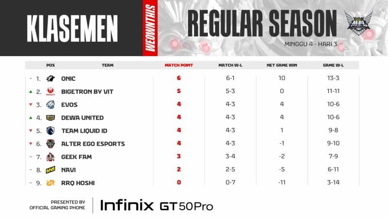 Menutup Week 4, klasemen MPL ID S17 semakin menarik: