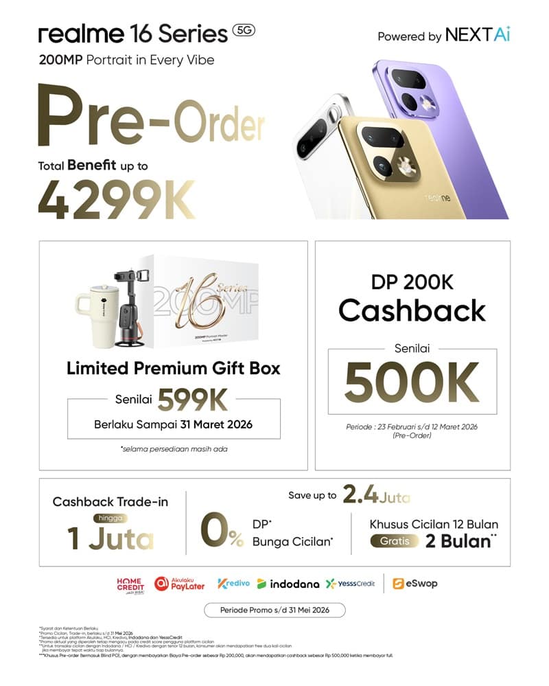 Dengan kombinasi kamera segmen-first 200MP + 50MP Periscope Telephoto, algoritma portrait canggih, desain premium hasil kolaborasi dengan Naoto Fukasawa, serta program pre-order bernilai tinggi, realme 16 Series 5G siap menjadi smartphone pilihan anak muda Indonesia untuk menangkap setiap vibe dalam kualitas terbaik.