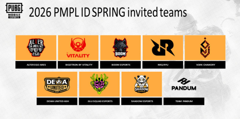 Sebanyak 24 tim akan bertanding, dengan 9 tim undangan yang sudah mengamankan slot PMPL ID Spring 2026, yaitu: