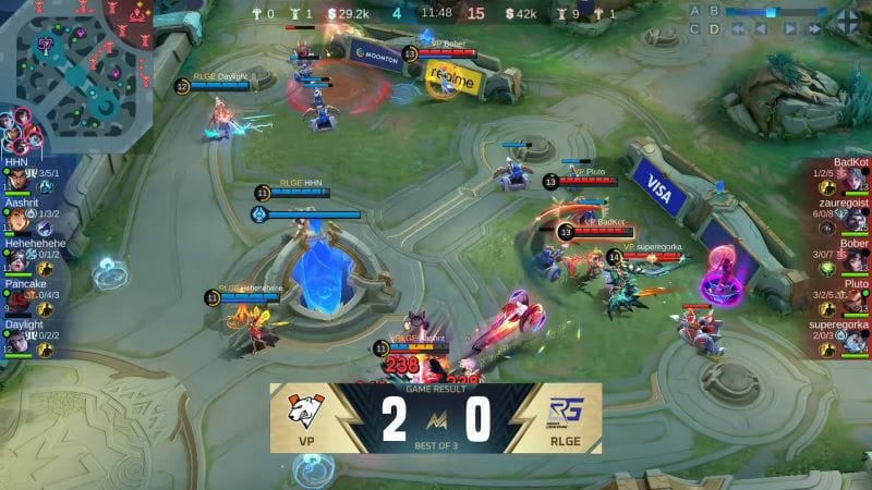 RLGE sempat mencuri harapan di game kedua lewat First Blood, namun overconfidence langsung dibayar mahal. Momen krusial terjadi di menit keenam saat RLGE memaksa teamfight dalam kondisi tidak ideal. VP bertahan, membalikkan keadaan, dan mengunci kemenangan di menit ke-12.